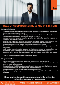 Head Of Customer Services And Operations